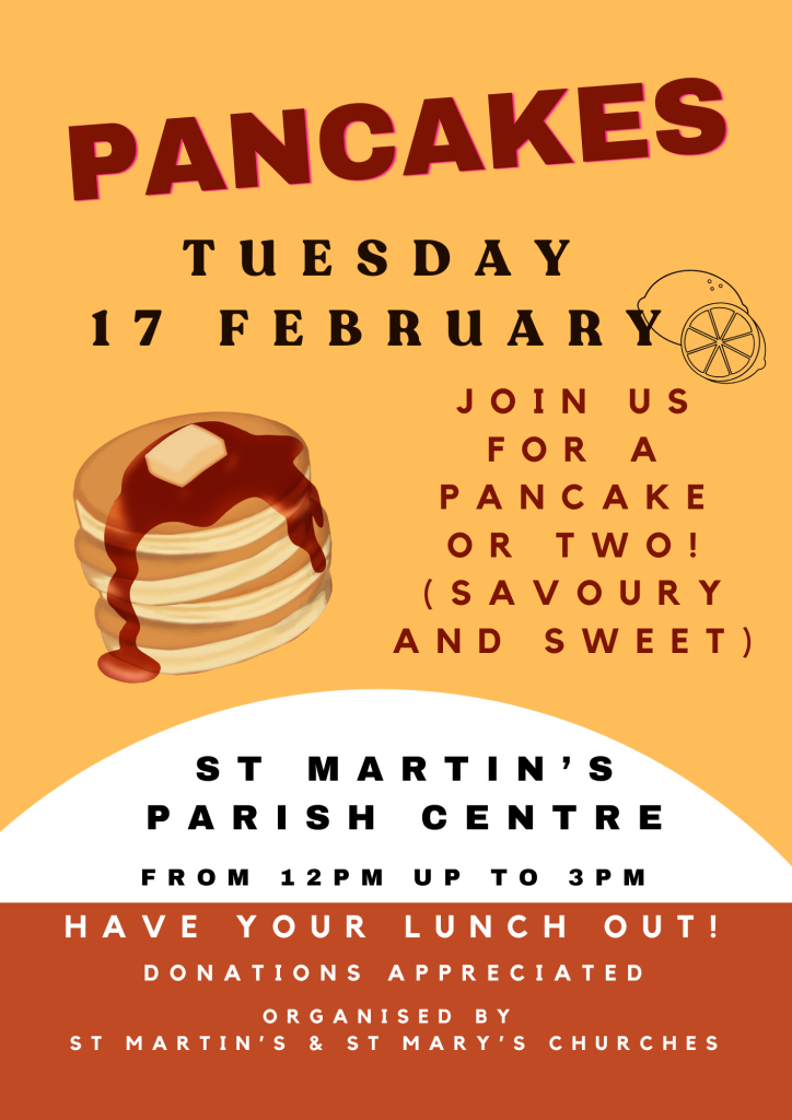 Tuesday 17 February 12.pm - 3.00pm - St Martin's Parish Centre - See our poster below